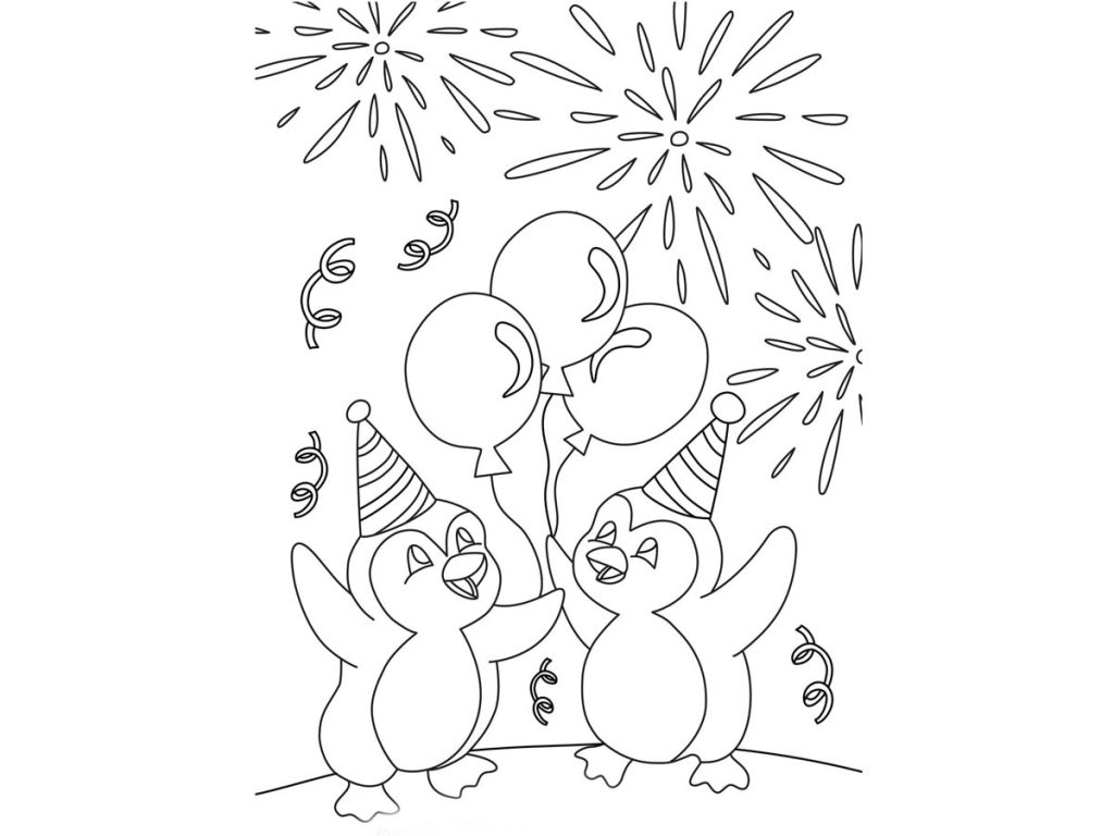 Kolorowanka: Noworoczny bal pingwinków