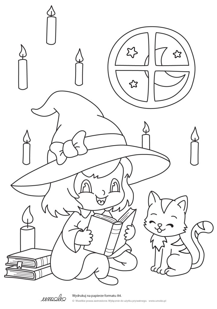 Kolorowanka mała czarownica z kotkiem Dowiedz się więcej »