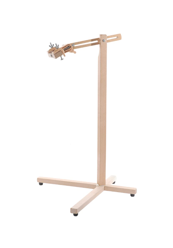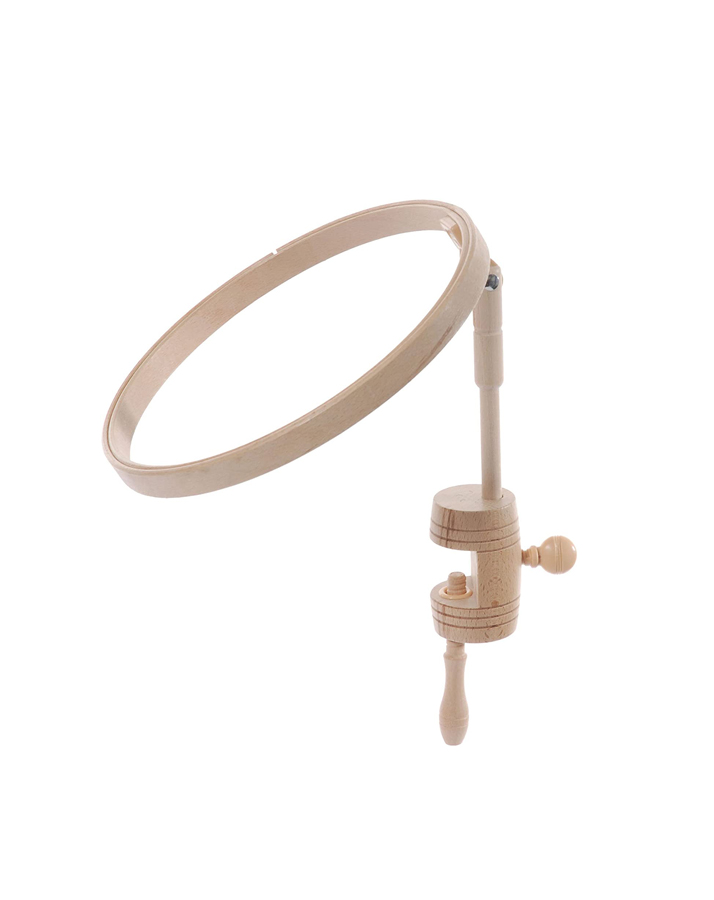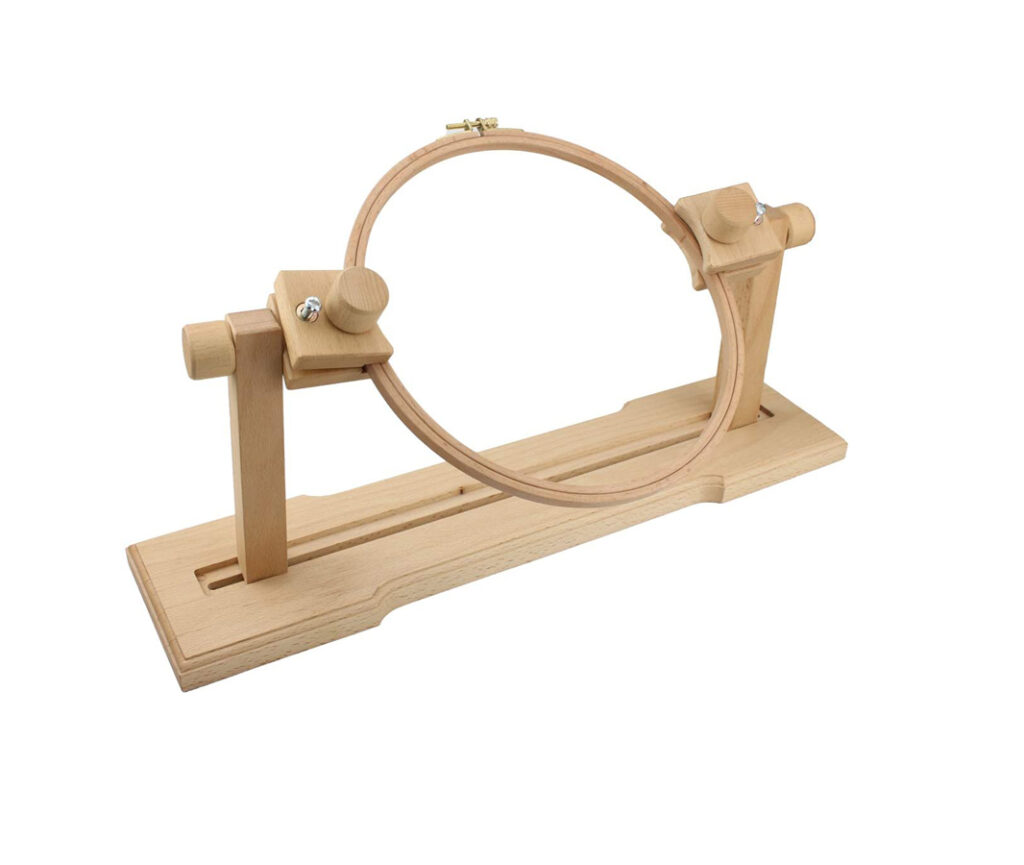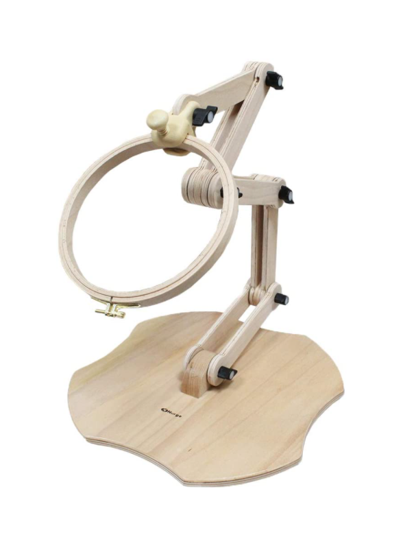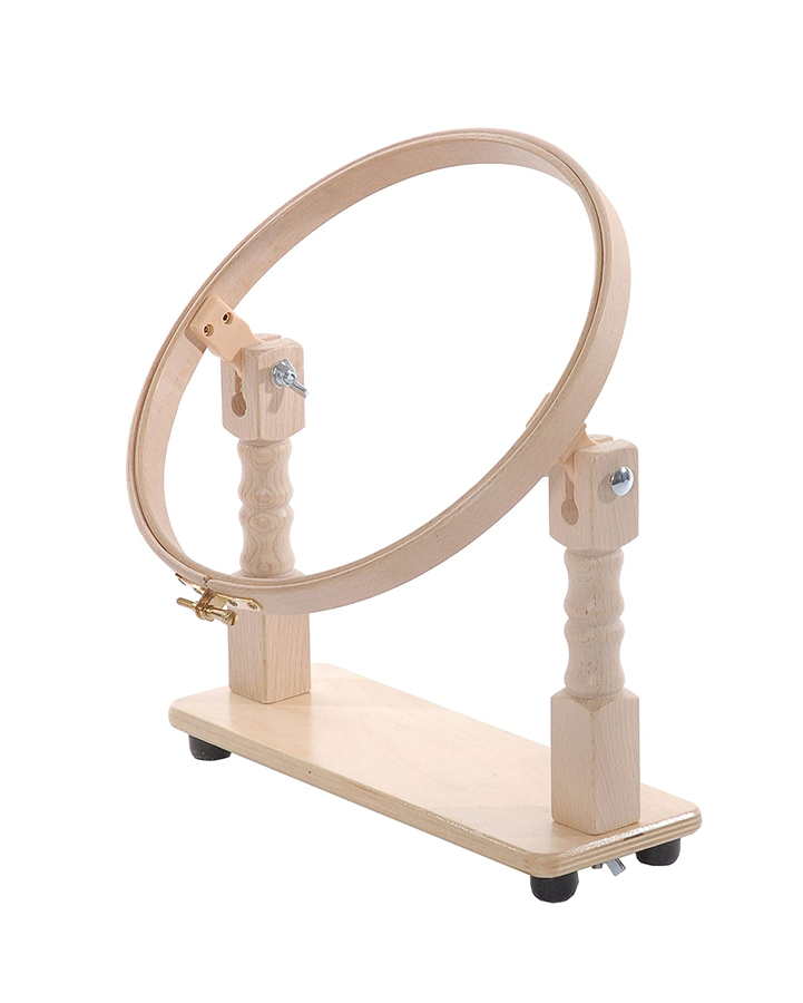 - Beczułkowe – małe, zgrabne, kompaktowe. Łatwo je zabrać ze sobą w podróż bo nie zajmują wiele miejsca. Minus – potrzebujesz stołu lub blatu do ich przymocowania. Jeśli jednak zawsze pracujesz przy stole i nie zależy ci na możliwości zmiany miejsca pracy na kanapę czy fotel jest to opcja jak najbardziej do rozważenia. Stojaki beczułkowe są świetne także do nagrywania filmów z procesu haftowania.