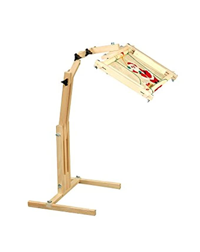 - Stojaki podłogowe – duże, masywne stojaki przy których możemy pracować na stojąco lub siedząc na krześle czy w fotelu. Idealne dla osób, które pracują z dużymi tamborkami lub ramami. Jeśli tworzysz duże hafty i masz własną pracownię lub miejsce w domu które jesteś w stanie przeznaczyć na stojak super sprawa. Jeśli pracujesz na małych tamborkach lub z miejscem jest u ciebie słabo – czytaj dalej.