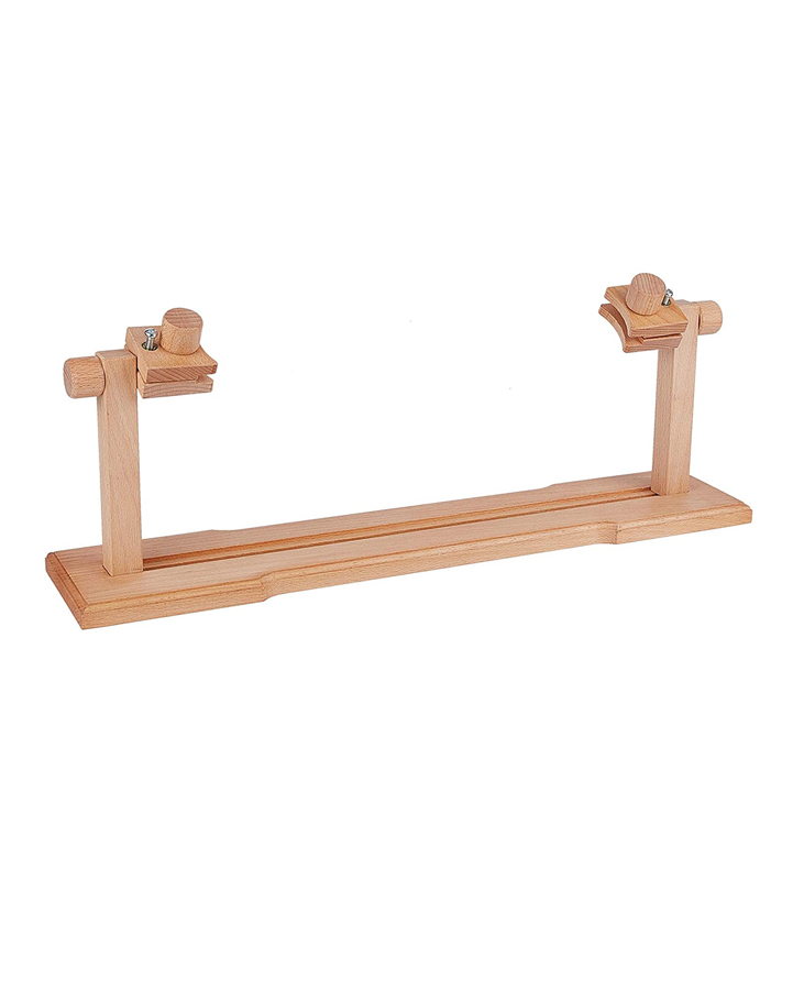 - Stołowe – składają się z prostokątnej podstawy i dwóch uchwytów na tamborek. Pracujesz na nich przy stole. Kupując tego typu stojak warto zastanowić się na jakich tamborkach mamy zamiar pracować by nie kupić zbyt wąskiego stojaka. Brak w nich również regulacji na wysokość.