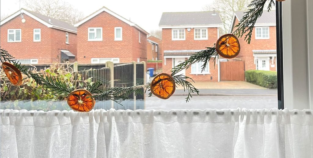 Girlanda z pomarańczy jest niezwykle prosta w wykonaniu a jednocześnie wproawdza do wnętrza klimat świąteczny nie tylko przez uroczy wygląd ale także zapach jaki wydziela szczególnie jeśli suszyliśmy owoce samodzielnie.