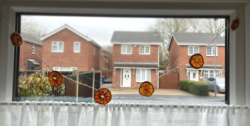 Najpiękniej prezentuje się przy oknach, gdy światło słoneczne oświetla pomarańcze tworząc małe witrażyki. Ale równie pięknie przyozdobi kominek, ścianę czy zieloną girlandę przy wejściu. Może nawet posłóżyć jako efektowny łańcuch na choinkę.
