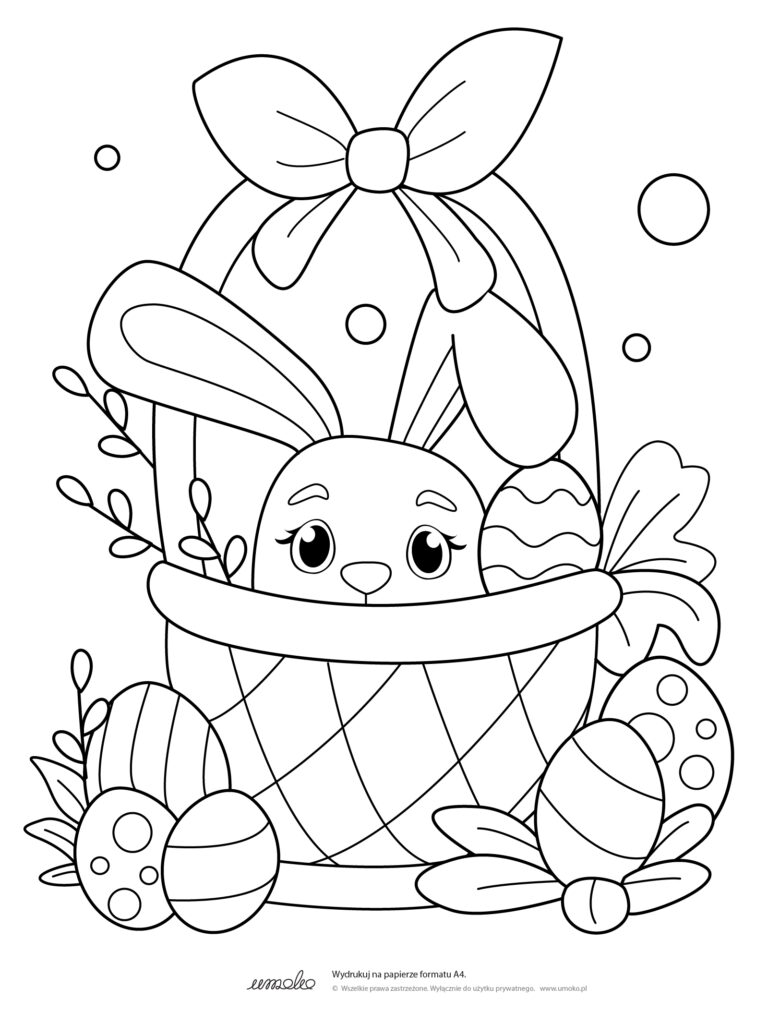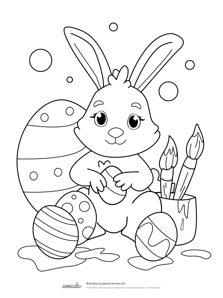 I oto już kolejna darmowa kolorowanka z wielkanocnym królikiem w roli głównej. Tym razem królik osobiście dostarcza komuś taczkę pełną pisanek i wiosennych kwiatów. Łapcie za kredki i mazaki by nadać pisankom odpowiednio wiosennego i wielkanocnego nastroju! Podziel się pokolorowaną pracą swojego dziecka z hasztagiem #umokoprintable lub #umokokolorowanki Aby pobrać plik kliknij na niego prawym klawiszem myszy i […]